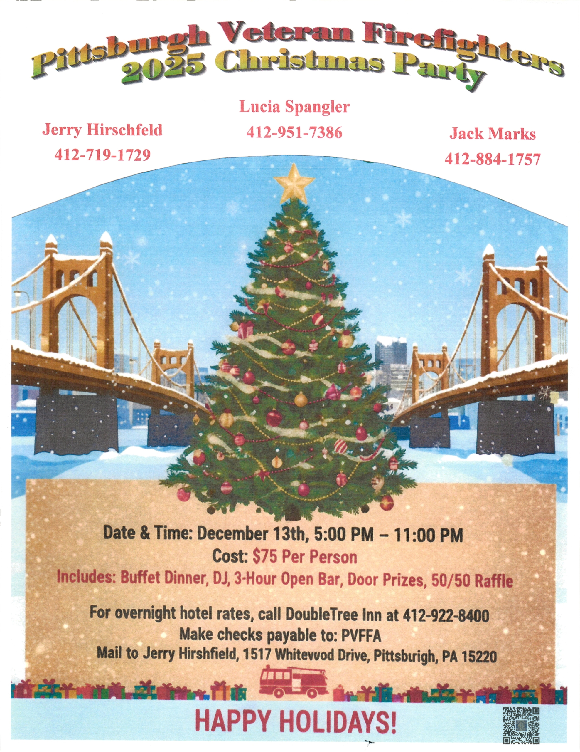 December 13, 2025–Saturday–PVFFA Christmas Party-Double Tree in Greentree–5:00pm till 11:00pm